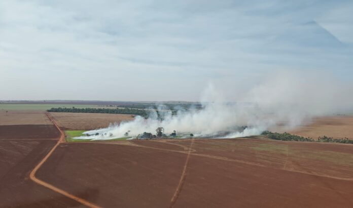 Casa, tratores e galpões da Fazenda Ypuitã foram destruídos pelo fogo na madrugada deste sábado. Polícia Militar, DOF e Força Nacional atuam na região de tensão.