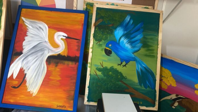 As telas foram desenvolvidas em aulas de arteterapia na Clínica Ressignificar, parceira do Bioparque na iniciativa, e revelam a sensibilidade e o talento desses jovens artistas ao retratar a fauna pantaneira.