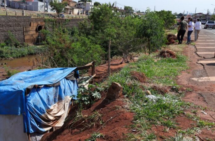 É um barraco improvisado, com pedaços de madeira, escorado na encosta do rio Anhanduí, no meio da Norte-Sul – antigo apelido da avenida Ernesto Geisel e suas continuações, chamada assim por cortar a cidade de uma ponta a outra.