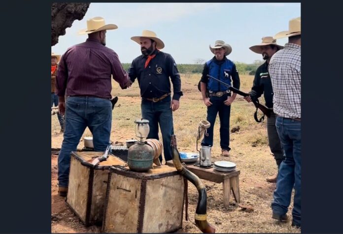 Pra marcar esse capítulo, os Brutus montaram um filme de faroeste, rodado na lendária Fazenda Buritizal, coração do distrito de Arapuá. O enredo parece coisa de caderno velho: dois bandos de cowboys, vindos de lados diferentes da estrada, se trombam no pó do caminho e decidem cavalgar juntos. A missão? Seguir rumo à cavalgada, guiados pela paixão pela tradição, pela força da terra e, claro, pela carne estalando no fogo de chão.