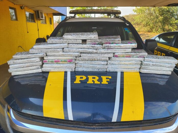 A Polícia Rodoviária Federal (PRF) apreendeu, na tarde deste sábado (20), 22,5 quilos de maconha durante fiscalização a um ônibus de transporte intermunicipal, no km 141 da BR-262, em Água Clara.