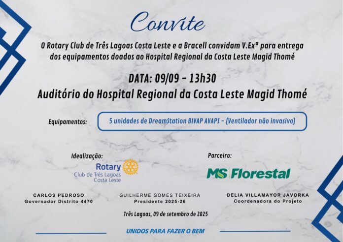 Visando auxiliar no enfrentamento e no atendimento aos casos crescentes em Três Lagoas e no Estado de Mato Grosso do Sul da Síndrome Respiratória Aguda Grave (SRAG), o Rotary Costa Leste vem buscando parceiros para apoiar o Hospital Regional da Costa Leste Magid Thomé.