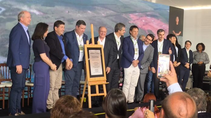 O evento contou com a presença do presidente da República em exercício e ministro do Desenvolvimento, Indústria, Comércio e Serviços, Geraldo Alckmin, do governador do Estado, Eduardo Riedel, de autoridades, diretores e colaboradores da Arauco.