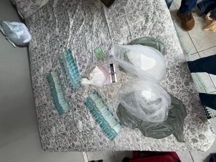 A ação ocorreu após o avanço de investigações que apontavam para a existência de drogas armazenadas em uma residência da cidade. No local, a equipe encontrou 1,380 kg de cocaína, divididos em três porções — um tablete inteiro e duas porções fracionadas — além de uma balança de precisão e R$ 3.000,00 em espécie.