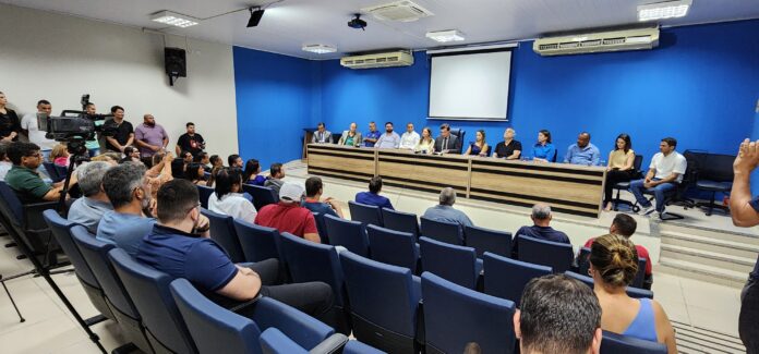 Acompanhado de vereadores da base e do diretor da Câmara Municipal, o Prefeito eleito de Três Lagoas Cassiano Maia, do PSDB, realiza nesse momento uma coletiva à imprensa para anunciar a formação da sua equipe administrativa e comentar sobre o futuro de sua gestão que começa em janeiro de 2024.