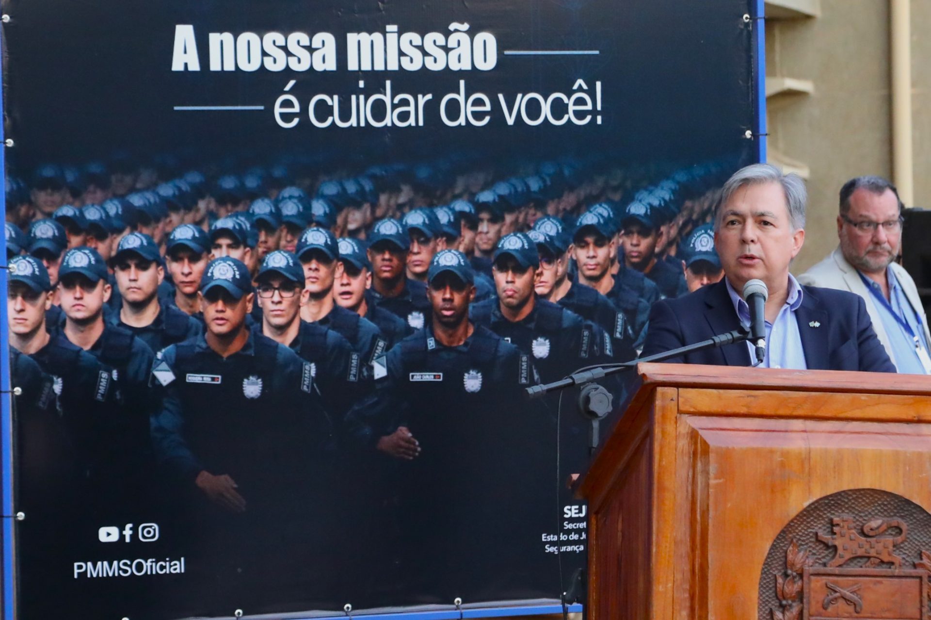 Se dirigindo à tropa militar e convidados, o governador Eduardo Riedel defendeu o cumprimento da ordem pública pelas forças de segurança do Estado. “Recentemente, formamos quase 500 militares e junto veio a necessidade de equipar a força policial e dar suporte para os senhores e senhoras poderem trabalhar e oferecer aquilo que há de melhor dentro da estratégia de ação da Polícia Militar e cumprir o dever dando muito orgulho ao Mato Grosso do Sul”.