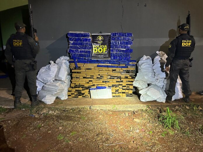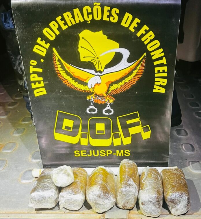 Policiais militares do DOF (Departamento de Operações de Fronteira) apreenderam na madrugada deste domingo (22), um Fiat Palio Weekend. O veículo, com as placas afixadas falsas, estava carregado com 588 quilos de maconha distribuídos em volumes prensados. Na ação ninguém foi preso.