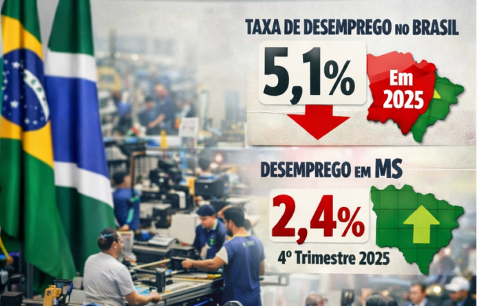 No cenário estadual, Mato Grosso do Sul vem se destacando por manter um dos menores índices de desocupação do país ao longo de 2025, com 2,4% de desemprego no 4º trimestre, entre os mais baixos entre as 27 unidades da federação.