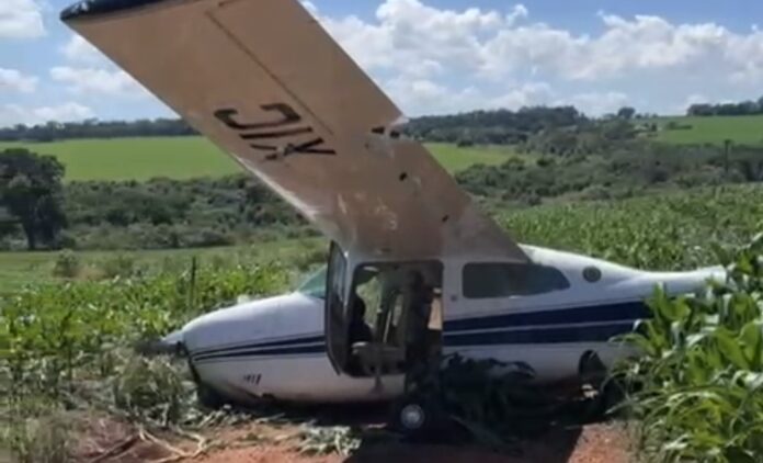 Um avião de pequeno porte realizou um pouso forçado na manhã desta segunda-feira (30) em uma fazenda localizada no município de Antônio João, na região de fronteira de Mato Grosso do Sul. A aeronave, um Cessna 210 de prefixo PR-XIC, apresentou problemas mecânicos durante o voo e precisou descer em uma plantação de milho.