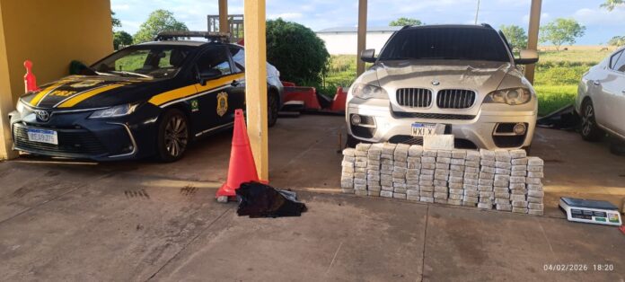 Uma grande apreensão de drogas foi realizada nesta quarta-feira (4) pela Polícia Rodoviária Federal (PRF) na região de Bataguassu. Durante fiscalização, os policiais abordaram uma BMW ocupada por um casal de nacionalidade estrangeira e acabaram descobrindo um carregamento milionário de entorpecentes escondido no veículo.