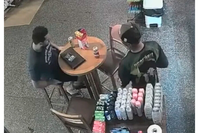 Imagem recuperada do vídeo dos dois conversando antes do assassinato. (Foto: Divulgação)